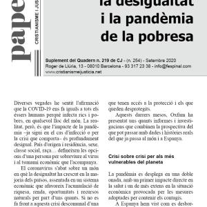 El coronavirus s’abat sobre un món en què la desigualtat ha crescut en la majoria dels països, assentada en un sistema econòmic que afavoreix l’acumulació de riquesa, renda, oportunitats i recursos naturals per part d’uns quants. Si no es fa front a aquesta crisi descomunal d’una manera diferent a com s’ha fet en altres casos, assistirem a un creixement agut de la pobresa i a l’aprofundiment de la bretxa que divideix la humanitat entre els que tenen accés a la protecció i els que queden desprotegits.