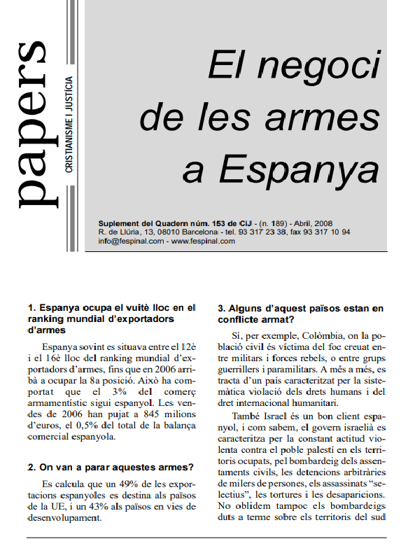 Subscripció al butlletíTica Font denuncia el tràfic d’armes i la posició d’Espanya en el rànquing mundial, vuitena, amb un 3% del total. Una part d’aquest tètric comerç es realitza amb països amb conflictes armats o que no respecten els DDHH, el que està prohibit per la UE. Un comerç que tant pot ser legal com il·legal. Encara que sigui legal, les exportacions estan sotmeses a la Llei de secrets oficials. A EEUU, segon exportador després de Rússia, el Congrés ha d’aprovar les exportacions, a diferència d’Espanya, on els diputats tenen vetada la informació.