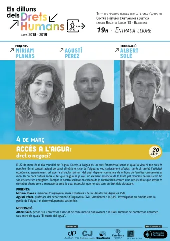 El 22 de març és el dia mundial de l’aigua. L’accés a l’aigua és un dret fonamental sense el qual la vida ni tan sols és possible. En el context actual de canvi climàtic el cicle de l’aigua es veu seriosament afectat i amb ell també l’activitat econòmica, especialment pel que fa al sector primari del qual depenen centenars de milions de famílies camperoles al món. Hi ha pocs dubtes sobre el fet que l’aigua és ja avui un element essencial de la lluita pel recursos naturals com ho són els recursos energètics. Tampoc la nostra societat no escapa de la contradicció entorn d’un recurs bàsic que sovint és concebut abans com a mercaderia amb la qual especular que no pas com un dret dels ciutadans.