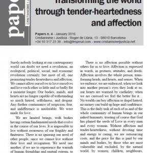 In a world that is hostile towards life and humanity, that hardens hearts and pulls us apart, we take as our starting-point, and as the lens through which to view the world and its people, a revolution favouring affection and tender-heartedness. As 2015 draws to a close, we want to spotlight five areas that we believe to be in particular need of acceptance or transformation.Entering this link you will have the possibility to download this paper.If you have the possibility you can also help us with a contribution.