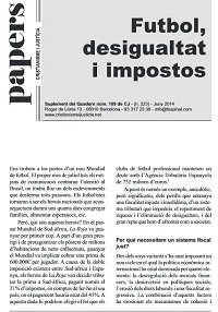 Lo que está pasando con el mundo del fútbol sirve a los autores de ejemplo de los peligros que entraña una fiscalidad injusta e insolidaria. Este Papel quiere ser un toque de atención ante el actual debate público sobre un sistema tributario que impide el reparto de riqueza y es incapaz de afrontar a la creciente desigualdad económica. Este es, sin duda, uno de los grandes retos que debemos afrontar como sociedad.Autores: Xavier Casanovas i Francesc MateuDescárgate este Papel aquí Puedes ver todos los Papeles publicados hasta ahora aquí