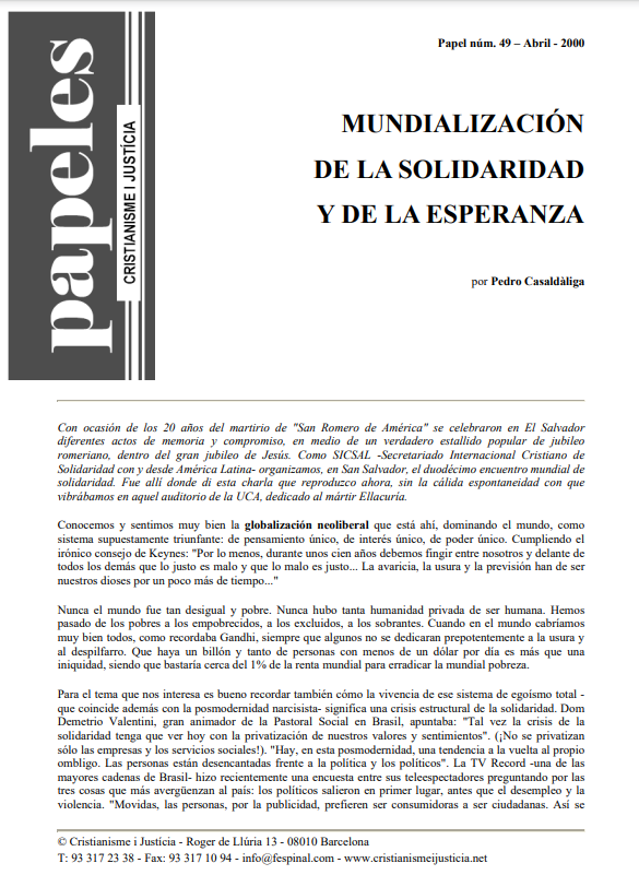Papeles #49 Mundialización de la Solidaridad y de la Esperanza