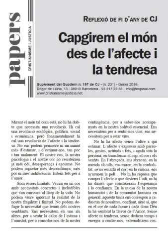 Cristianisme i Justícia lanza un llamamiento a una “revolución del afecto y la ternura”