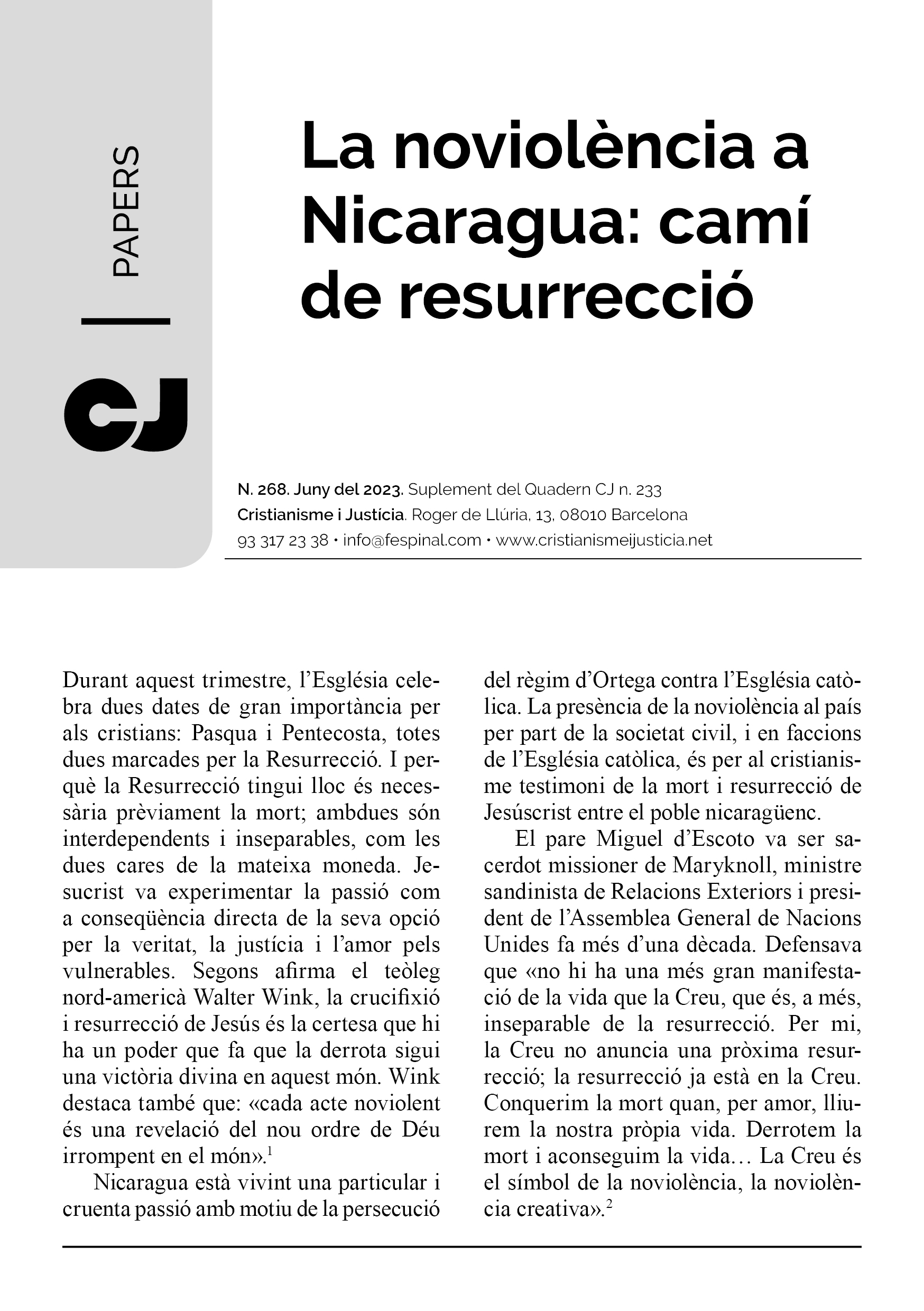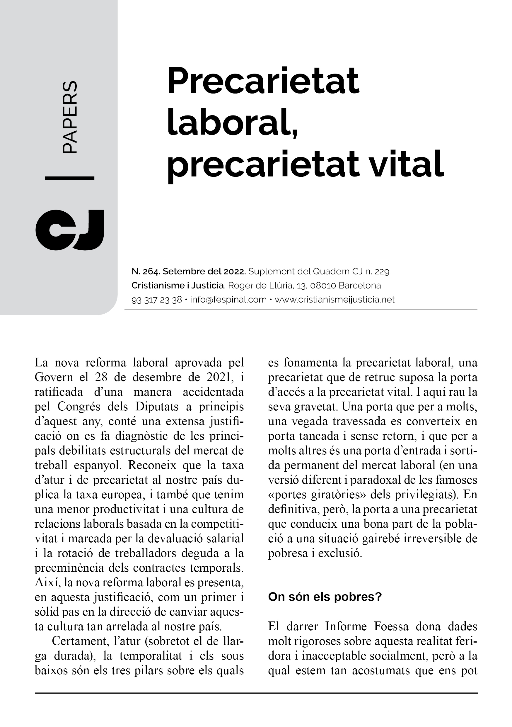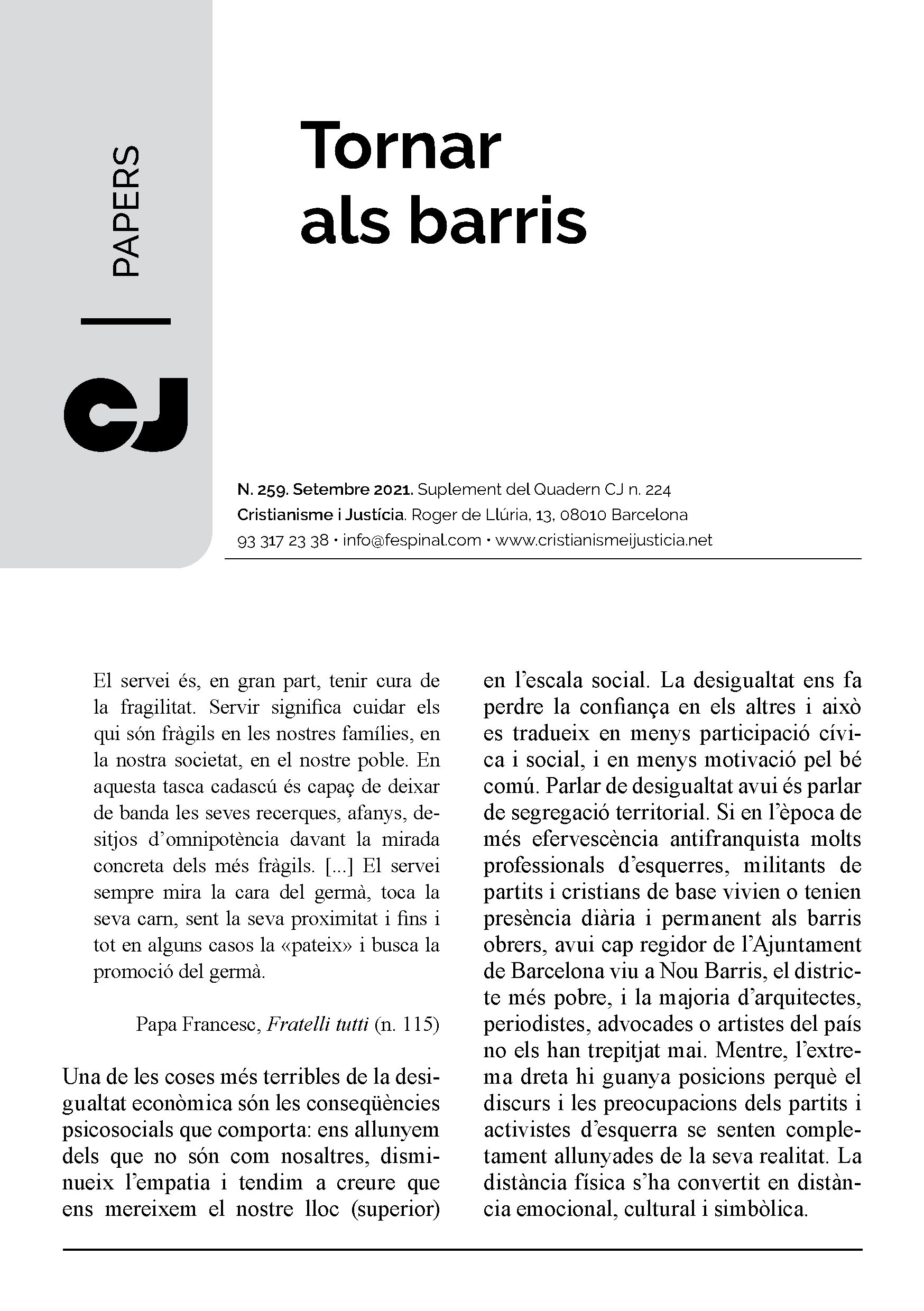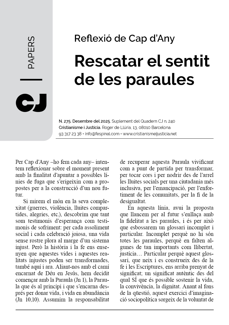 En un format breu i fàcil de llegir es sintetitza la presentació d’un tema d’actualitat. Els Papers més que oferir respostes tancades pretenen despertar en el lector l’interès per seguir buscant i reflexionant. Entenent però, que la brevetat no va renyida ni amb el rigor ni amb la profunditat.