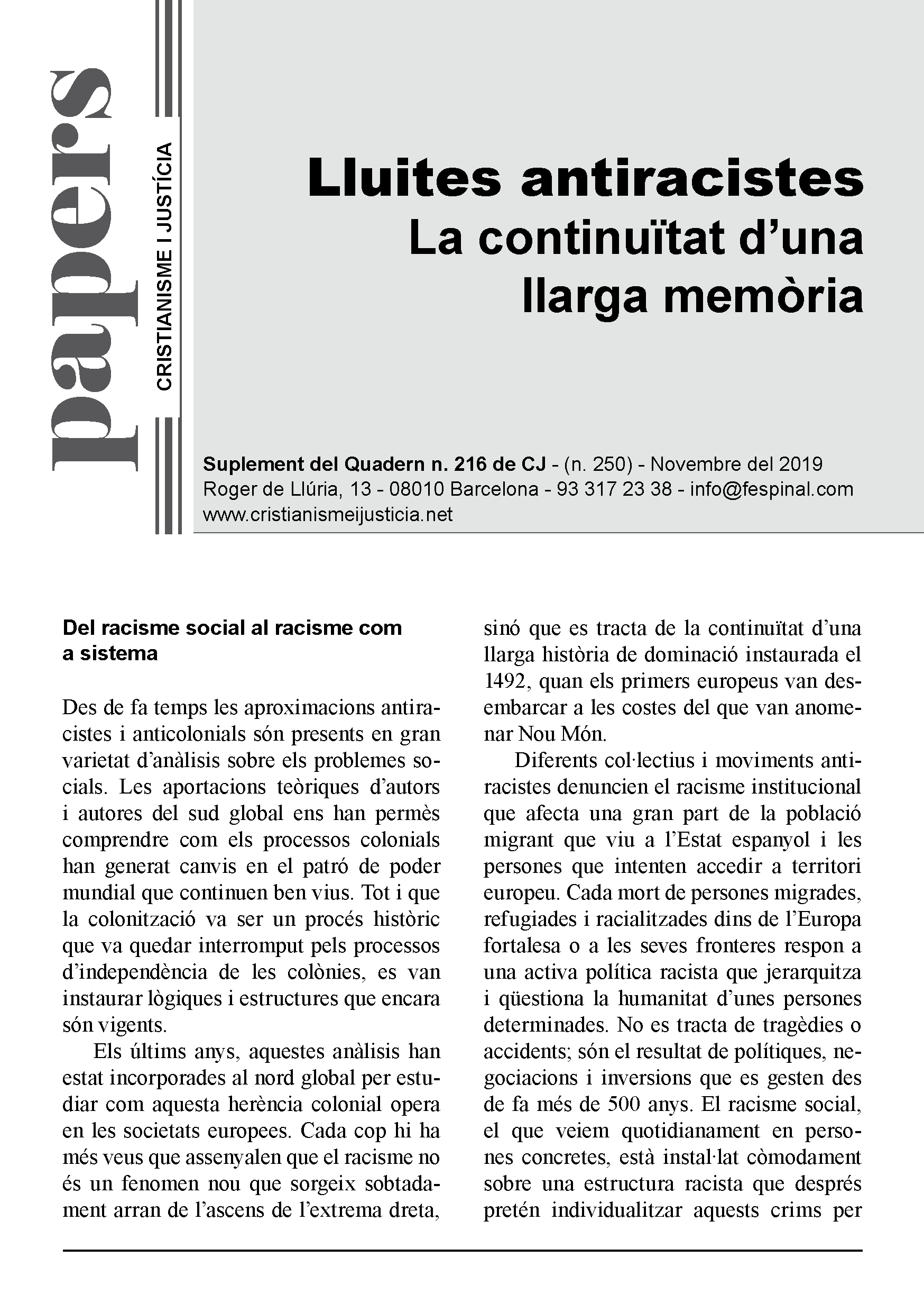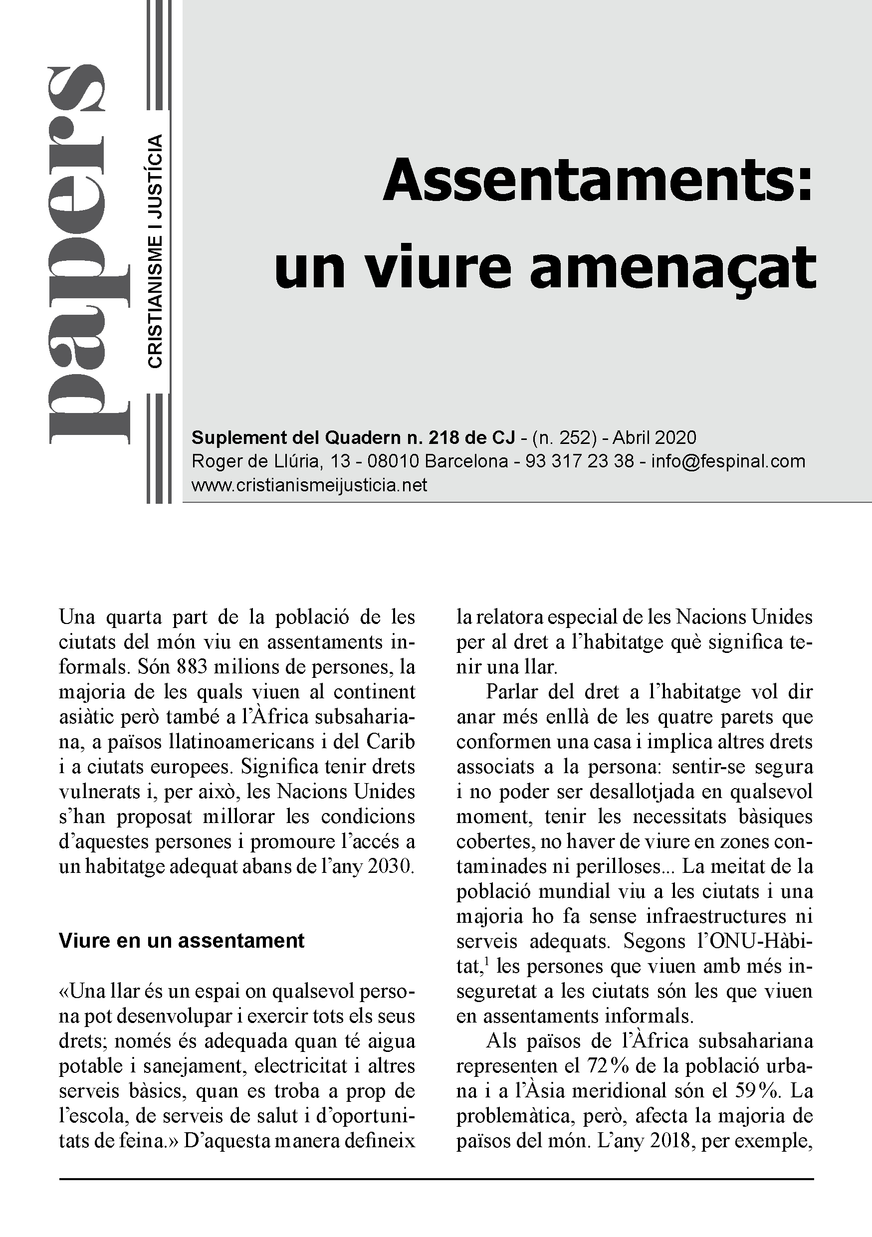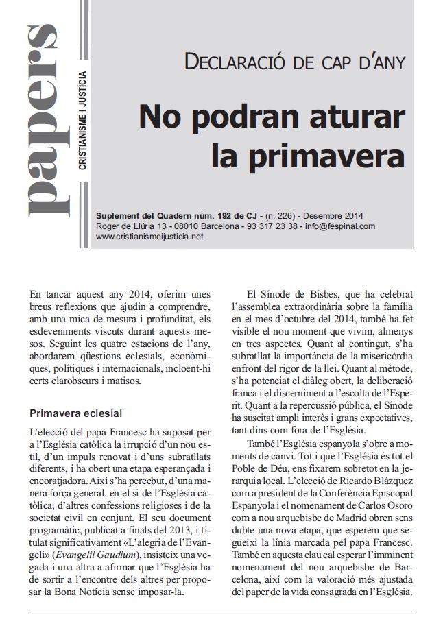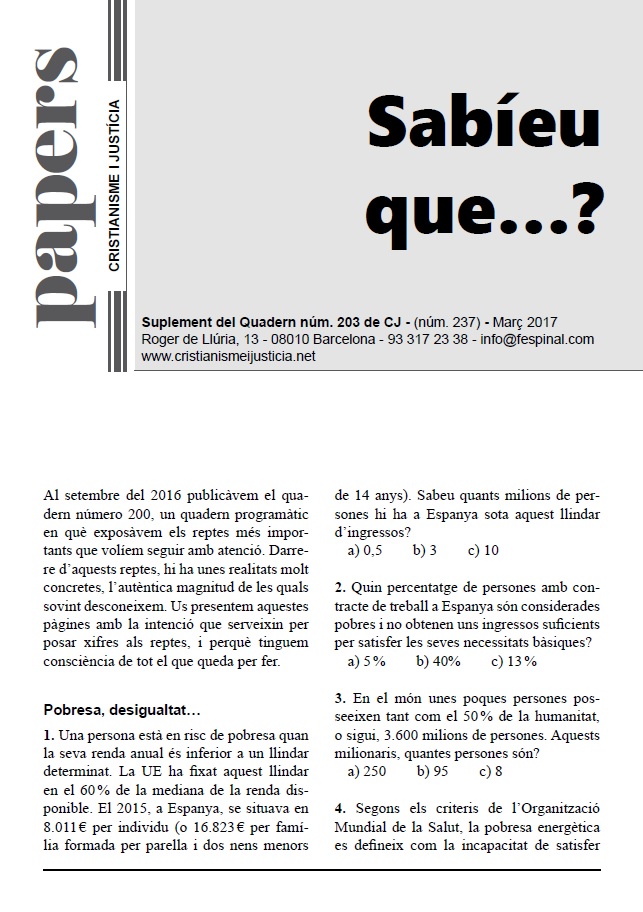 En un format breu i fàcil de llegir es sintetitza la presentació d’un tema d’actualitat. Els Papers més que oferir respostes tancades pretenen despertar en el lector l’interès per seguir buscant i reflexionant. Entenent però, que la brevetat no va renyida ni amb el rigor ni amb la profunditat.