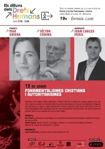Fenòmens com Salvini, Orban, Bolsonaro, Trump o Vox han irromput en l’escena política arreu del món. L’ascens al poder de l’extrema dreta ha anat acompanyat d’un discurs marcadament retrògrad, que aposta per un retorn a valors pretesament cristians. Aquesta sessió busca profunditzar sobre la instrumentalització del cristianisme que ha servit per justificar autoritarismes i de quina manera és possible donar-li una resposta des de la pròpia religió.