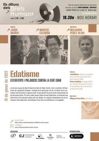 La tercera causa de discriminació al món és l'edat. Sovint, com a societat, infravalorem les capacitats físiques i mentals de la gent gran. De fet, el silenci de la normativa internacional en aquest àmbit fa que perdin força els drets fonamentals de les persones grans. Per això, volem posar sobre la taula l'edatisme, un fenomen que discrimina a les persones grans per raó d'edat, en comptes d'empoderar-les en un moment vital important, reivindicant el seu dret a la diferència i a la igualtat.