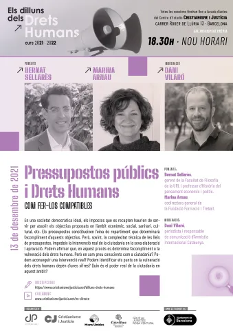 En una societat democràtica ideal, els impostos que es recapten haurien de servir per assolir objectius proposats en l'àmbit econòmic, social, sanitari, cultural, etc. Els pressupostos constitueixen l'eina de repartiment que determinarà l'acompliment d'aquests objectius. Però, sovint, la complexitat tècnica de les lleis de pressupostos, impedeix la intervenció real de la ciutadania en la seva elaboració i aprovació. Podem afirmar que, en aquest procés es determina el compliment o vulneració dels drets humans. Però, en com prou conscients com a ciutadania? Podem aconseguir una intervenció real? Podem identificar els punts on la vulneració dels drets humans depèn d'unes xifres? Quin és el poder real de la ciutadania en aquest àmbit?