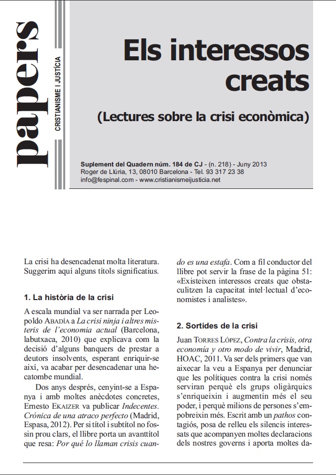 Papers#218Els interessos creats (Lectures sobre la crisi econòmica)