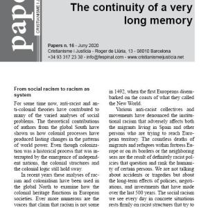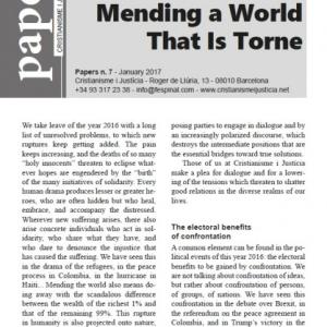 We take leave of the year 2016 with a long list of unresolved problems, to which new ruptures keep getting added. The pain keeps increasing, and the deaths of so many “saints Innocents” threaten to eclipse whatever hopes are engendered by the “birth” of many initiatives of solidarity. Those of us at Cristianisme i Justícia want to make a plea for dialogue and debate so as to keep from advancing toward the precipice. For, despite all the evidence, our faith in humanity and in what is most sacred therein encourages us to believe that we can help to turn the tide.