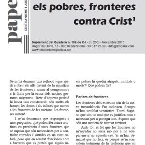 Este año ha estado marcado por diferentes citas electorales. La última, el próximo 20 de diciembre. Ante esta realidad, hacia el mes de mayo nos planteamos que sería interesante abrir una sección en el blog de Cristianisme i Justícia («Gastar la vida») en la que abordar diferentes temas clave para reflexionar a la hora de ir a votar (salud, ecología, educación, municipalismo, cultura, libertad de expresión, sociedad de la información, religiones, migraciones, derechos civiles, género, economía y fiscalidad…).