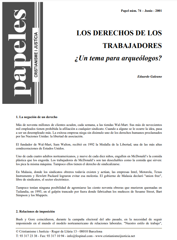 ¿Qué se ha hecho de los derechos de los trabajadores en las grandes empresas de las economías más avanzadas? Wal-Mart y McDonalds no contemplan que sus trabajadores puedan sindicarse. Como ellas, otras multinacionales muy "respetables". No contentos con lo que hacen sus empresas, los Estados Unidos intentan imponer su modelo laboral en el resto del mundo. Tanto ellos como China, y otros países, intentan aniquilar unos derechos laborales que tanto costaron lograr. Y los trabajadores en la peor de las cárceles: el miedo. Miedo al desempleo, fundamentalmente.
