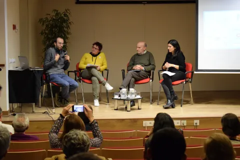 Mueve la noviolencia se presentó con un diálogo con Joan Morera, jesuita, impulsor y coordinador del proyecto, Sheila Vilaseca mediadora escolar y experta en gestión de conflictos y Antoni Soler, presidente de FundiPau, moderados por la periodista Maria Cusó.