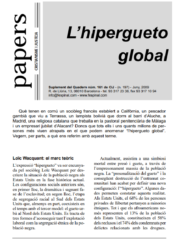 Subscripció al butlletí“Hipergueto”, expressió que neix als Estats Units per a designar l’explotada i segregada població negra. De l’hipergueto nord-americà a l’hipergueto global? El jesuïta Izuzquiza critica durament l’externalització de les fronteres, els CIE com a presó i mantenir preventivament empresonats molts immigrants, oblidant els drets humans més bàsics. Immigrants sotmesos a criminalització ambiental, estigmatització ètnica i vulnerabilitat social. Es tracta d’abocar els immigrants a la criminalitat?