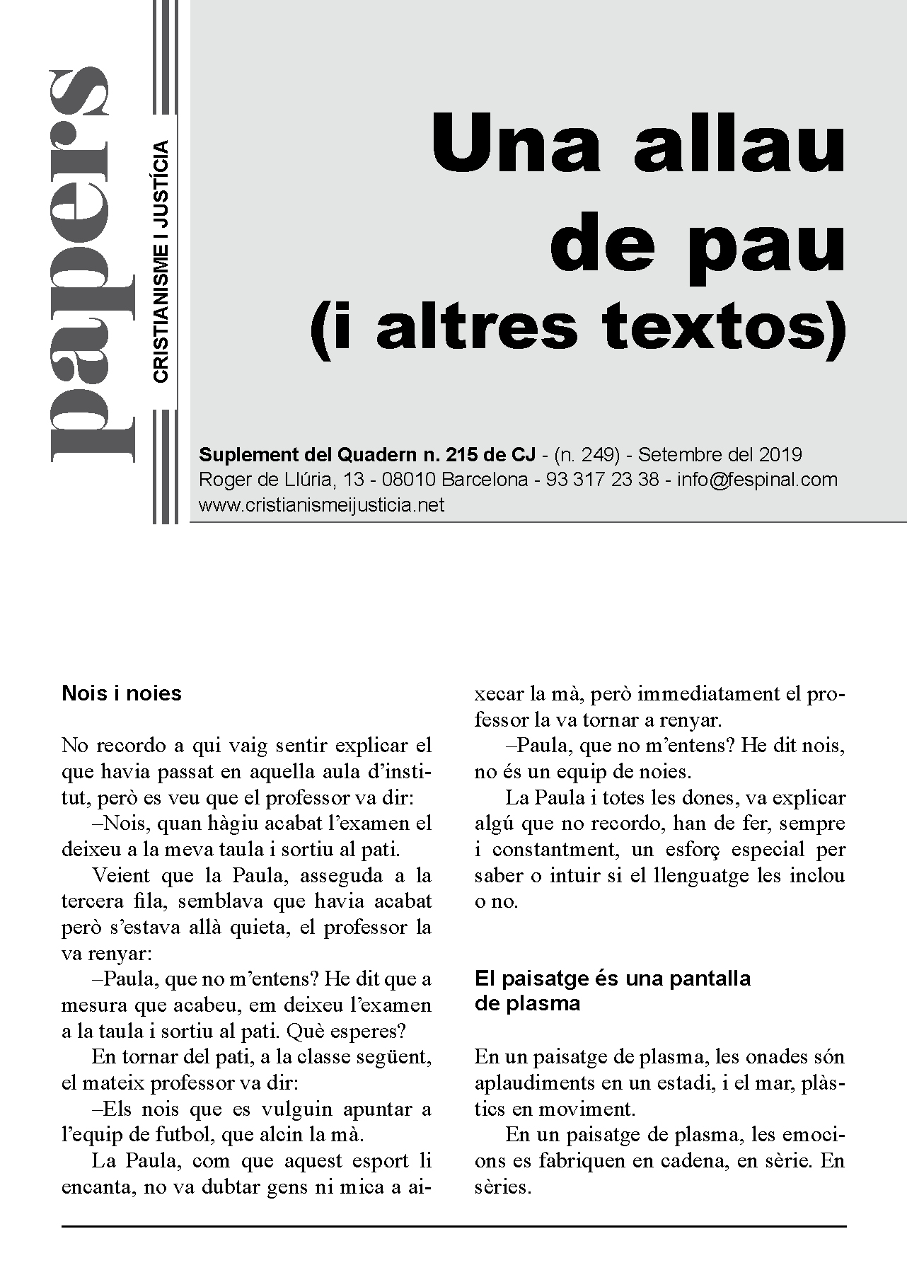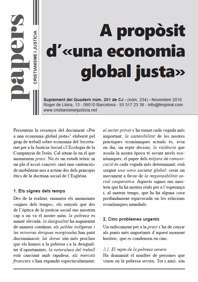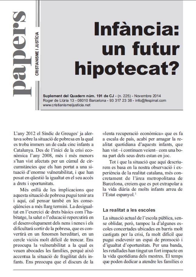 En un format breu i fàcil de llegir es sintetitza la presentació d’un tema d’actualitat. Els Papers més que oferir respostes tancades pretenen despertar en el lector l’interès per seguir buscant i reflexionant. Entenent però, que la brevetat no va renyida ni amb el rigor ni amb la profunditat.