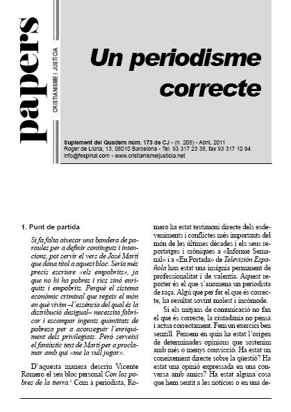 Des de fa anys, el periodisme s’ha agermanat amb l’actualitat i la publicitat, tots tres àmbits perfectament legítims; sovint, però, aquest agermanament crea monstres. El periodisme correcte és senzillament el que es guia pel codi deontològic. Ningú no hauria de deixar de banda aquests mínims exigibles i així aconseguir donar una informació correcta.